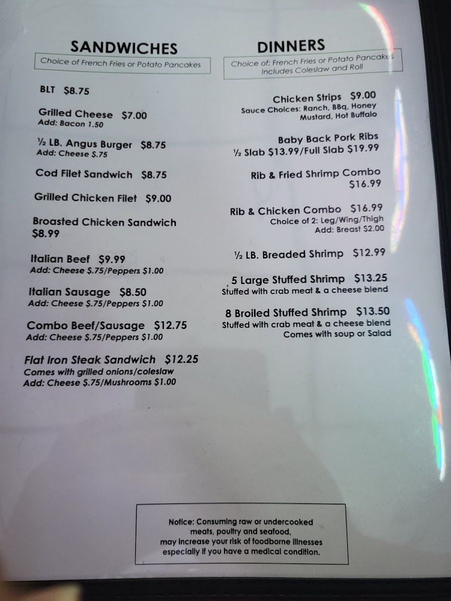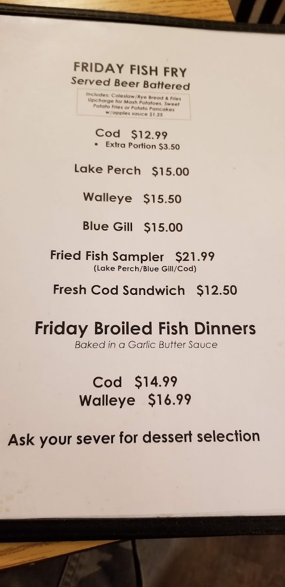 Pizza lovers will rejoice in the One Topping Pizza, which complements the Friday night tradition of an unforgettable fish fry. Patrons rave about the tender Broasted Chicken and the new Saturday Steak special, consistently praised for its flavor and tenderness.